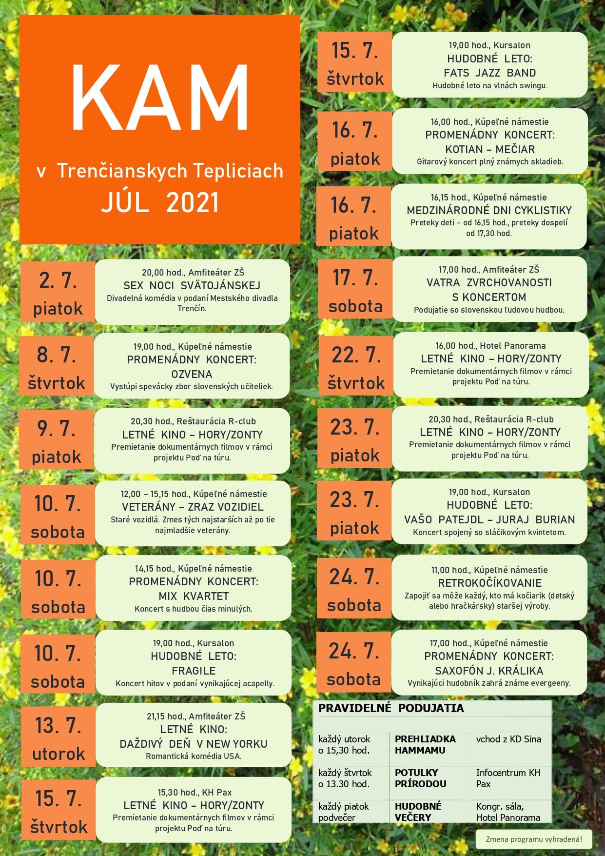 Mikulášske leto – program na júl