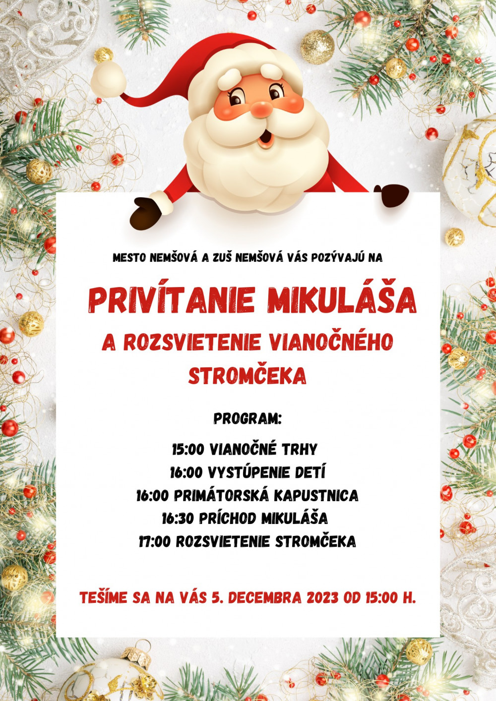 Rozsvietenie stromčeka a príchod Mikuláša