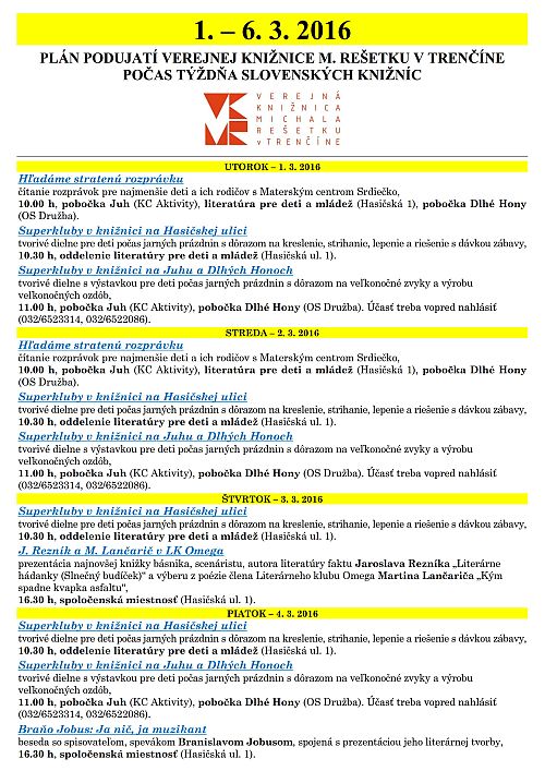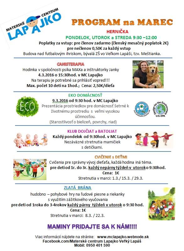 Program na marec 2016 v MC Lapajko
